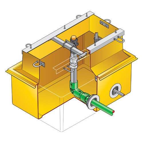 1100mm x 800mm GRP solid base sump and corbel to fit Gilbarco SK700 1/2 dispenser model. Includes dispenser support rails, shear valve rail and all fixings. Includes KPS pipework and Fibrelite entry boots.
