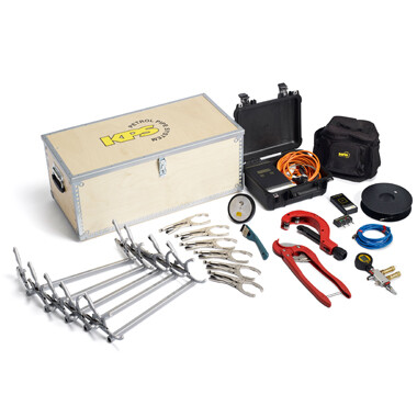 Incl. KP 318, KP 319, KP 322, KP 901 and KP LP01 The complete KPS welding kit with welding machine, fixtures, pipe scissors, rotating cutter, scraper, pressure test kit, conductive tester and laser pointer |